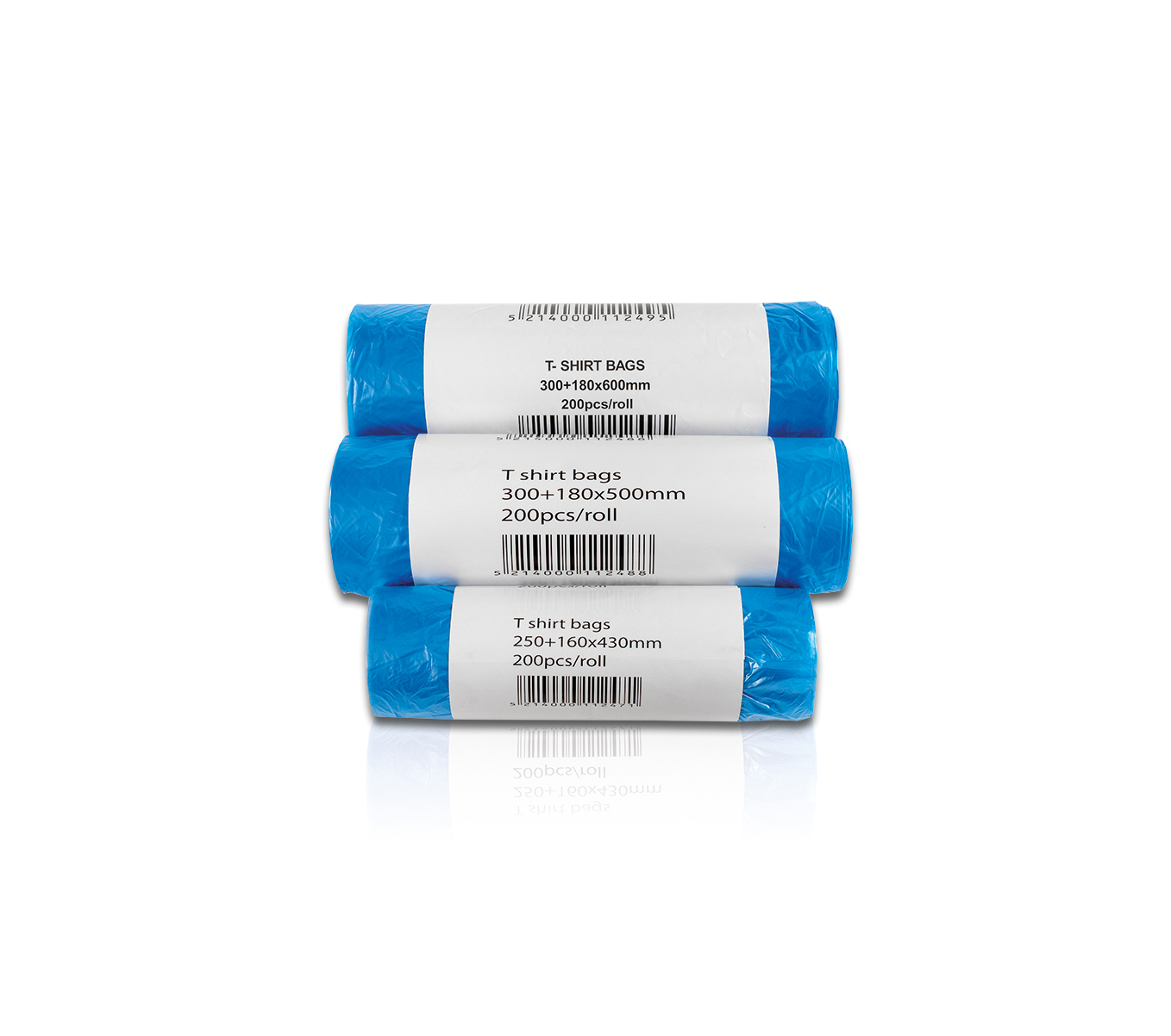Τσάντα φανελάκι σε ρολό σε διάφανο και μπλε χρώμα.