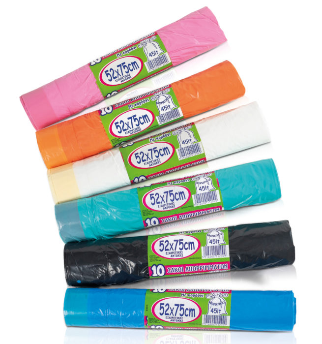 Σάκοι απορριμμάτων εξαιρετικής αντοχής για οικιακή χρήση με κορδόνι για ευκολία στο κλείσιμο.